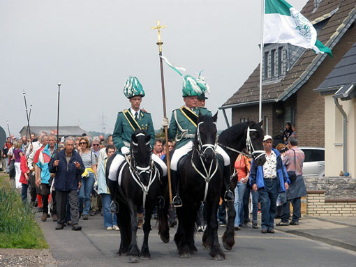 Maßgeblich an diesem beeindruckenden Bild beteiligt waren wieder die beiden großen Schützengesellschaften des Ortes, die St. Kunibertus Schützengesellschaft und die St. Sebastianus Bruderschaft.